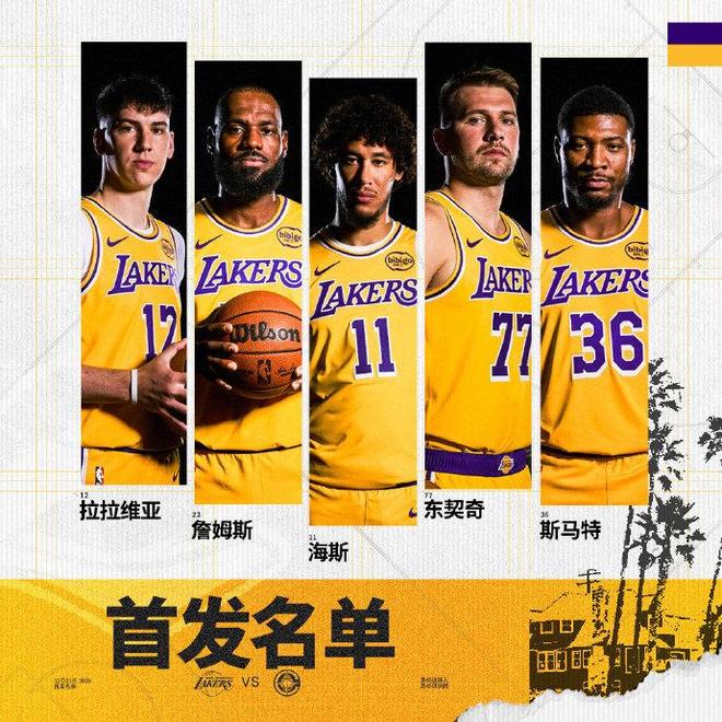 湖人本场缺少里夫斯、艾顿、文森特、八村垒与布朗尼,其中球队3位主力首发球员缺席。