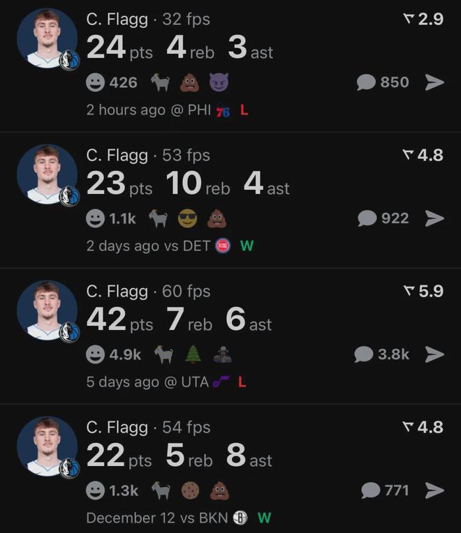 经历了刚进联盟之初的挣扎,弗拉格终于逐渐兑现天赋,本赛季至今场均贡献18.8分6.4板3.5助2.1失误1.3断,三项命中率47.8%、23.4%和82.8%。