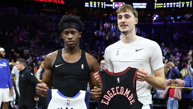 不怕詹姆斯库里杜兰特退役了,库珀·弗拉格和埃奇科姆交换球衣,彰显NBA未来之星的实力