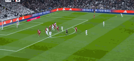 第39分钟,罗德里戈开出任意球,贝林厄姆头槌破门,皇马1-0